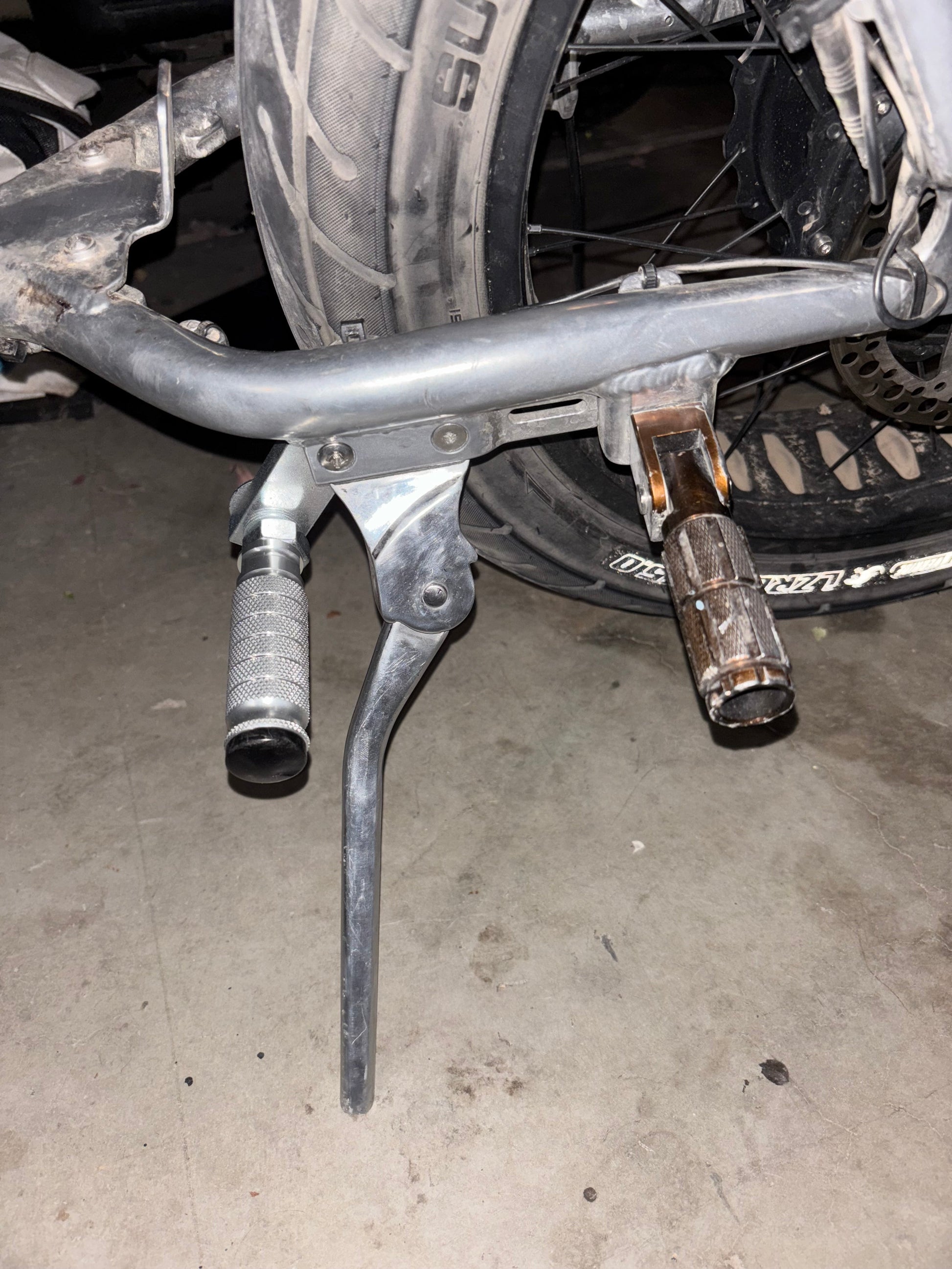 Super 73 custom shift lock kit for stunting. Many riders enjoy locking their foot under a peg for more stable tricks. * Please note a small amount of self drilling into one thread of the kickstand is required but everything else is set up for installation. Still works without kickstand
