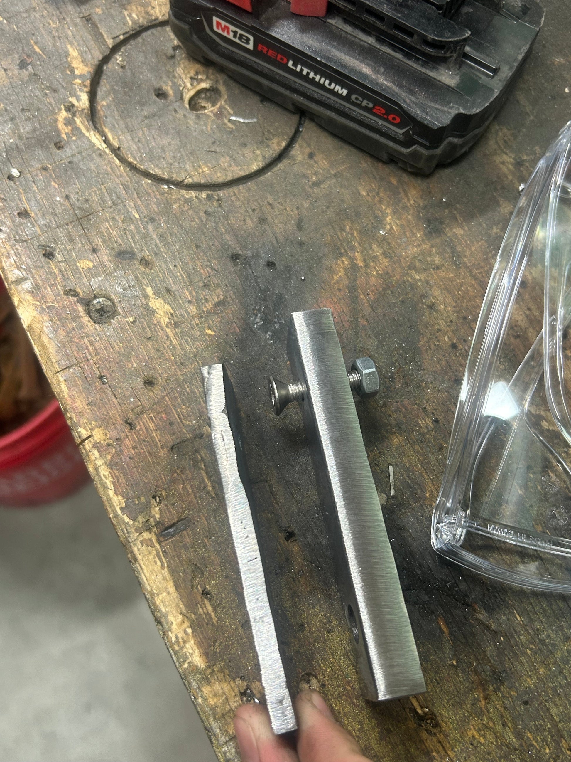 1x thick steel sanded bracket with holes drilled for install